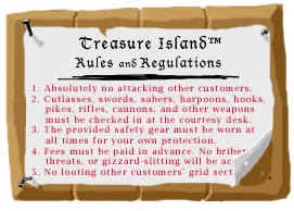 Well, when we got to the island, we sailed into a small cove and were surprised by seven other ships already anchored there. Steve immediately grabbed a cutlass and prepared to attack, but was stopped by a large sign that read "ABSOLUTELY NO ATTACKING OTHER CUSTOMERS." Anyway, we anchored and trekked up to a small building on the beach where Captain Fuzzbeard signed us in with the receptionist. She gave us a pack of shovels and assigned us to grid section F4. So that's where we spent the day digging and only found a few old rum bottles and a dead beetle. The guys were pretty frustrated by nightfall, so on the way back to the ship Fuzzbeard bought us all snacks at the refreshment booth.