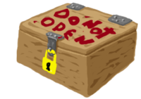 Steve has been officially barred from touching a paint brush. With that mission accomplished, I decided it was time to investigate Timmy's concerns. So while Steve was busy with crow's nest duty, I snuck over to his bunk and checked under it. Nothing except dirty clothes. Then I noticed a square-shaped lump under the bedding on his bunk. Carefully I pulled it out. It was a small wooden chest with the sloppy words "Do Not Open" written on top. There was a padlock painted over the clasp. Slowly I opened it up and saw something that sent chills down my spine. It was a copy of Voodoo for Dummies.